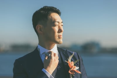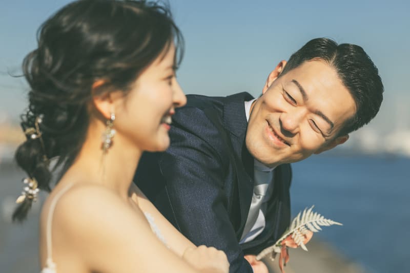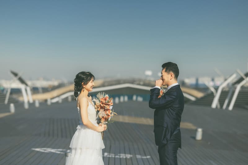 【横浜で記念日】汽笛が二人のスタートを祝う横浜のロケーションで美しい一枚を