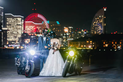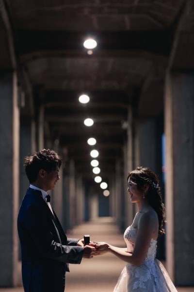 【横浜で記念日】汽笛が二人のスタートを祝う横浜のロケーションで美しい一枚を