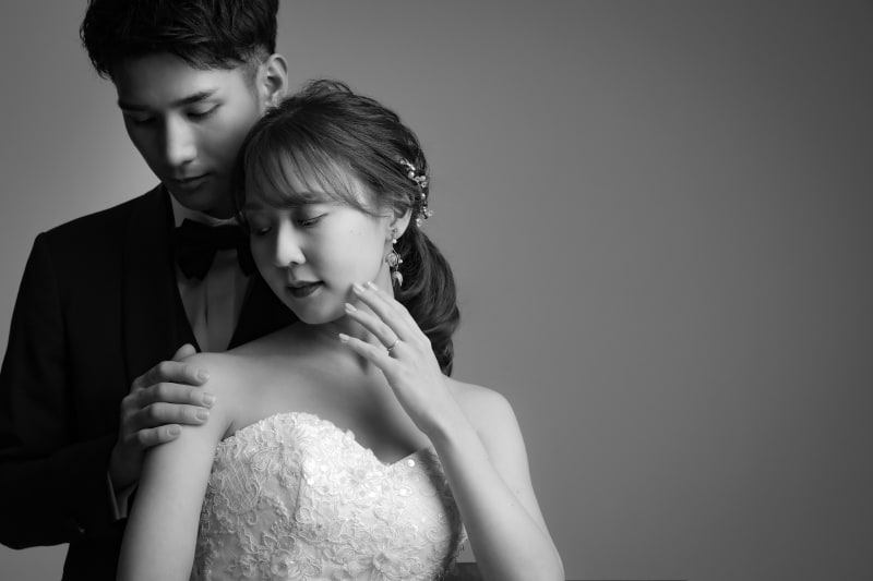 お二人をフォトグラファーが光と影、ポージング指示や撮影テクニックで美しく印象的に演出して写真に納めます。