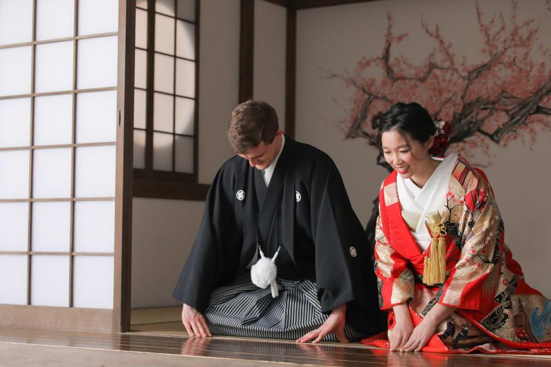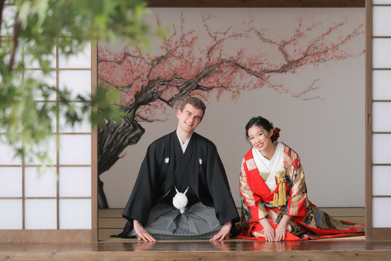 横浜みなとみらい店人気No.1。本格的な茶室スタジオで撮影する、和装の結婚写真