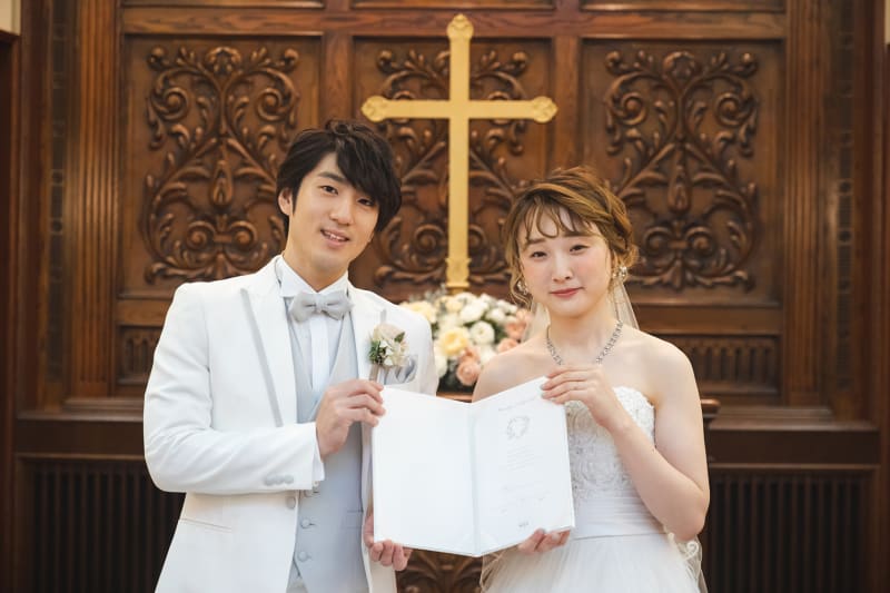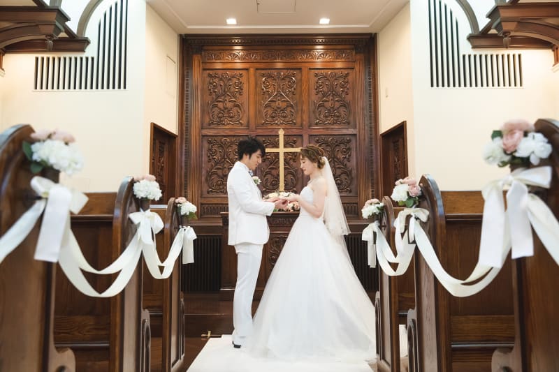 実際の挙式のように、一歩ずつバージンロードを進むお二人の姿や指輪交換をする様子のウェディングシーンを写真に残すことができます。