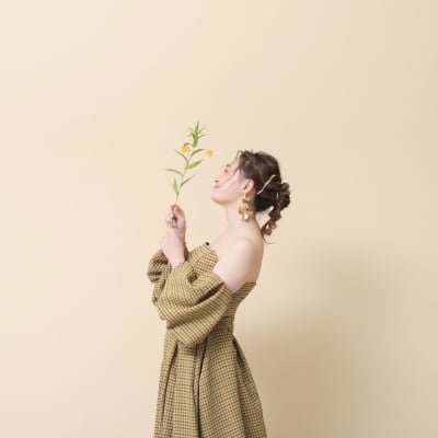 ベージュの背景にはカジュアル目なイエローのチェックのドレスや、テラコッタのカラードレスが映えますね✿.*・