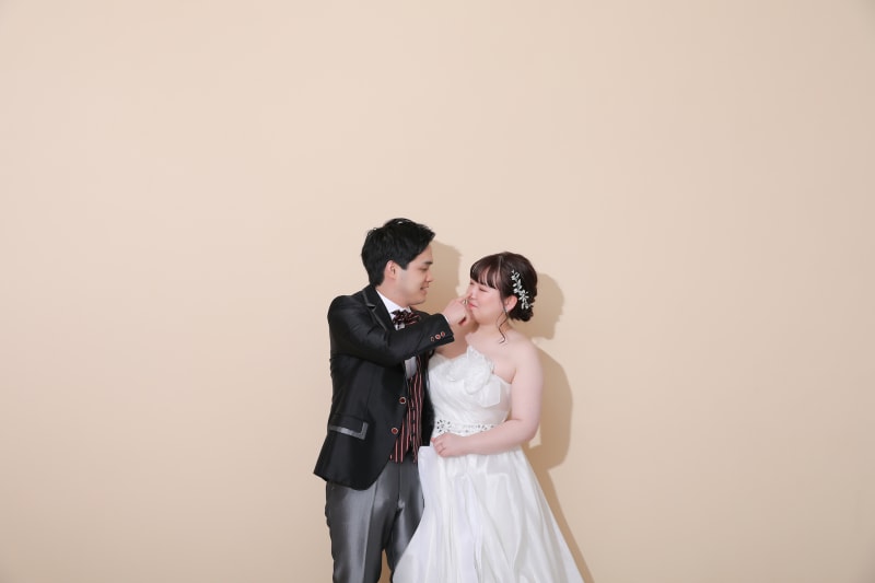 シンプルな背景だとこのようなお2人の仕草がとても引き立つので素敵です◎
