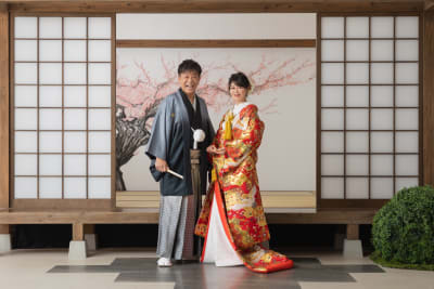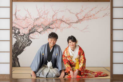 横浜みなとみらい店人気No.1。本格的な茶室スタジオで撮影する、和装の結婚写真