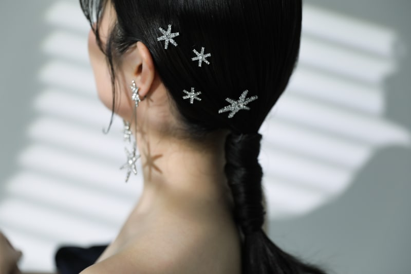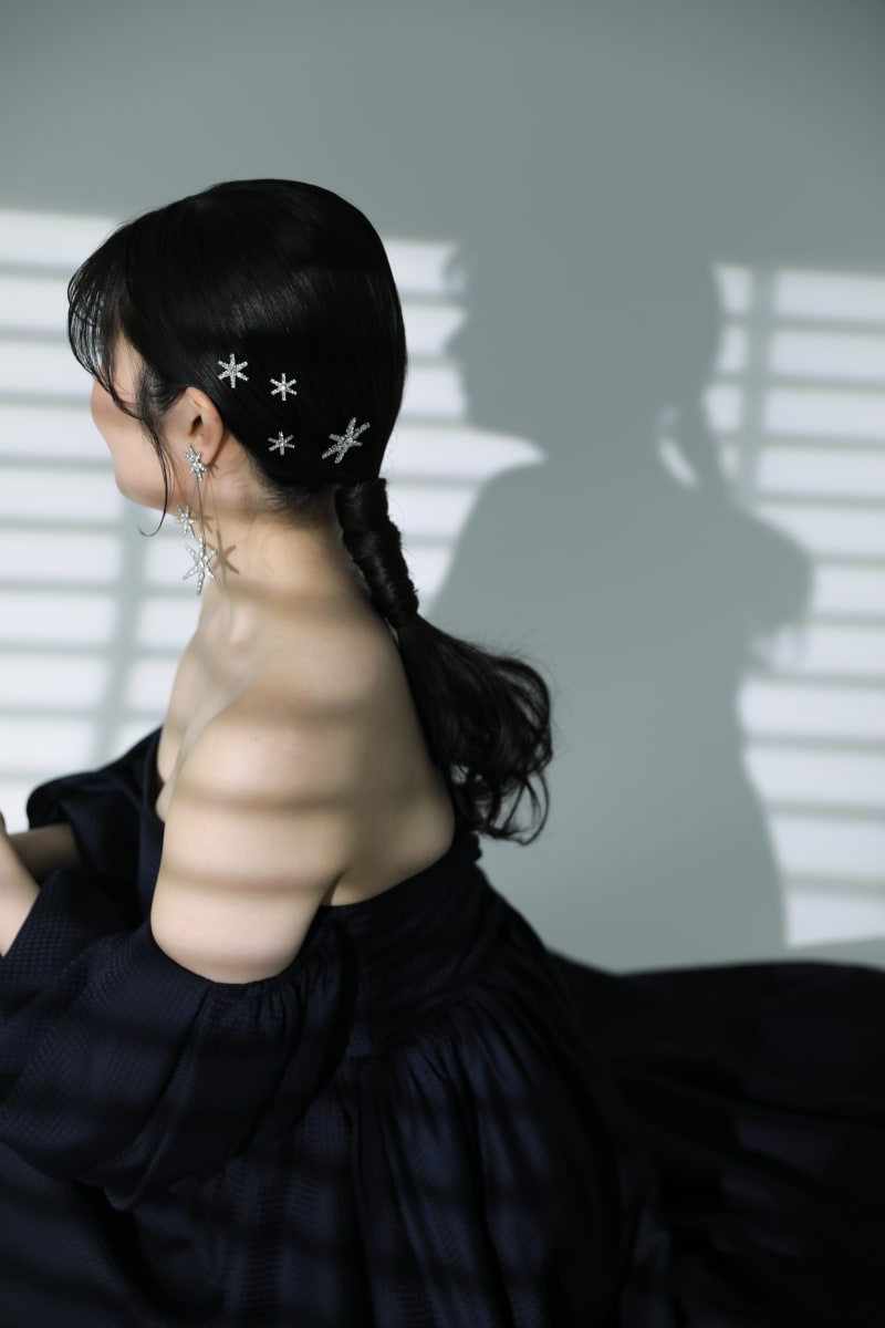 ヘアスタイルはシンプルなローポニーテールに、イヤリングと同じブランドのヘッドアクセサリーを合わせました^^