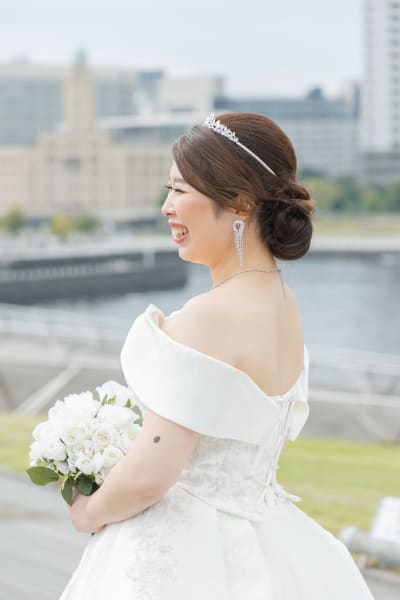 【横浜で記念日】汽笛が二人のスタートを祝う横浜のロケーションで美しい一枚を