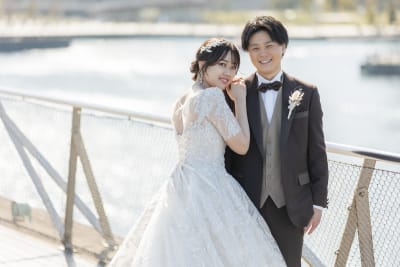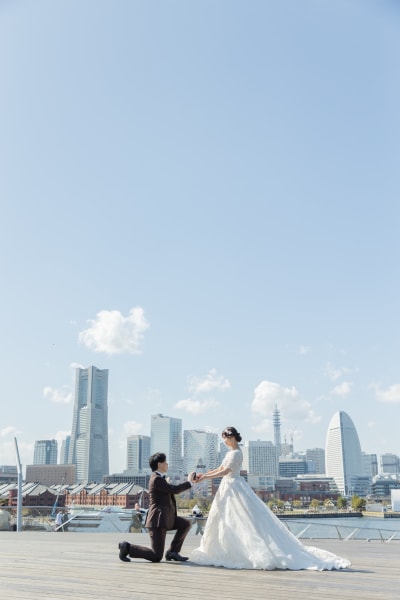 【横浜で記念日】汽笛が二人のスタートを祝う横浜のロケーションで美しい一枚を