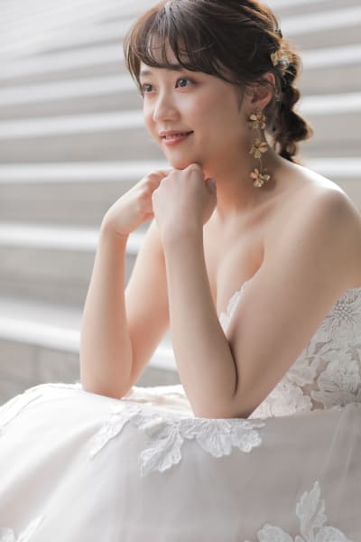 白いお肌にアイボリーのレースドレスがとってもお似合い。