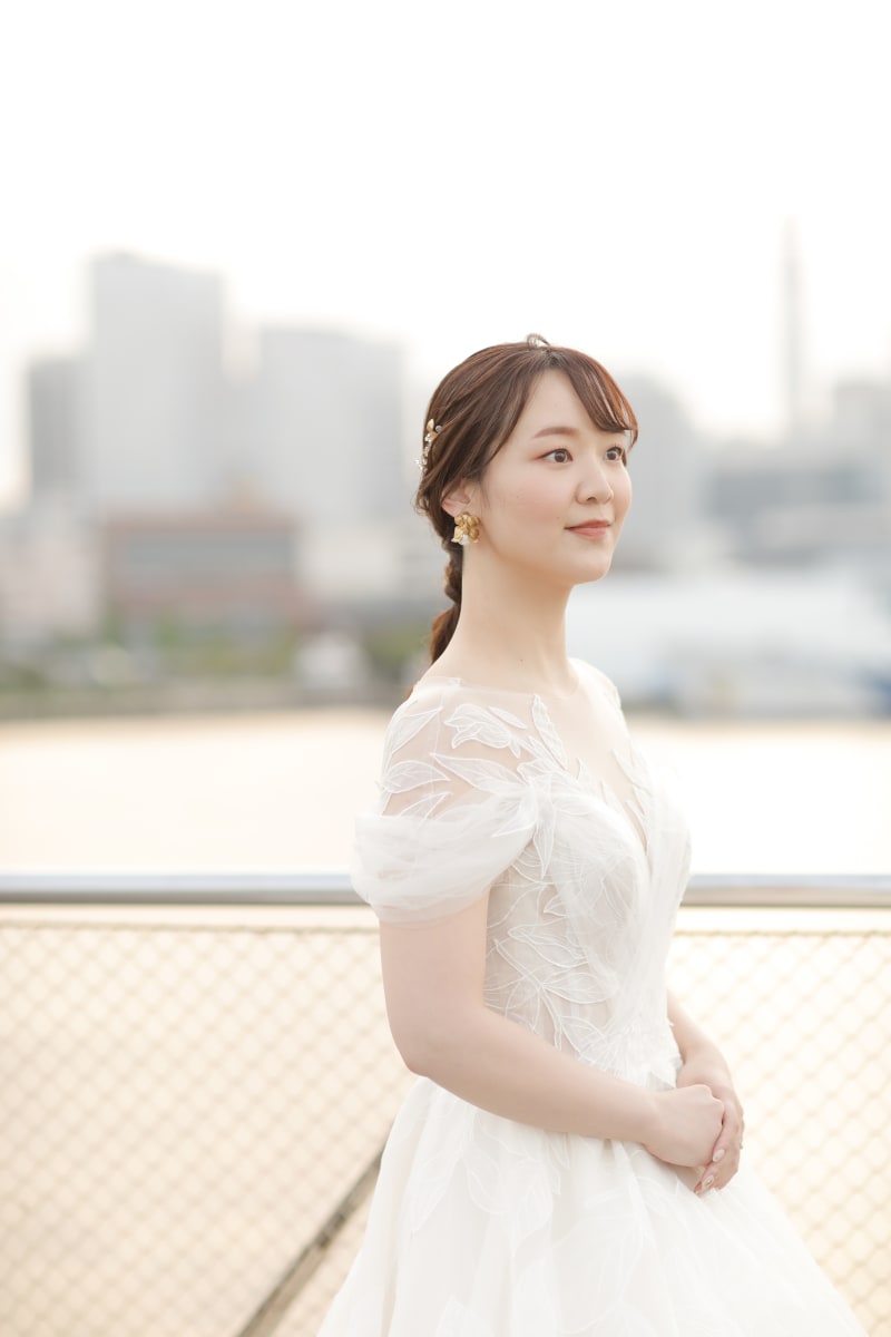 【横浜で記念日】汽笛が二人のスタートを祝う横浜のロケーションで美しい一枚を