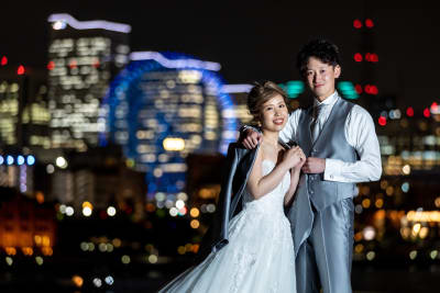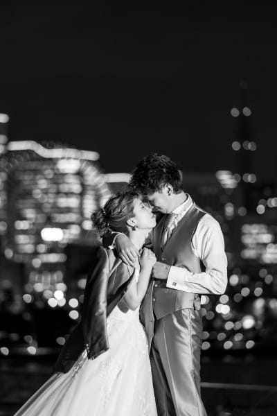 【横浜で記念日】汽笛が二人のスタートを祝う横浜のロケーションで美しい一枚を