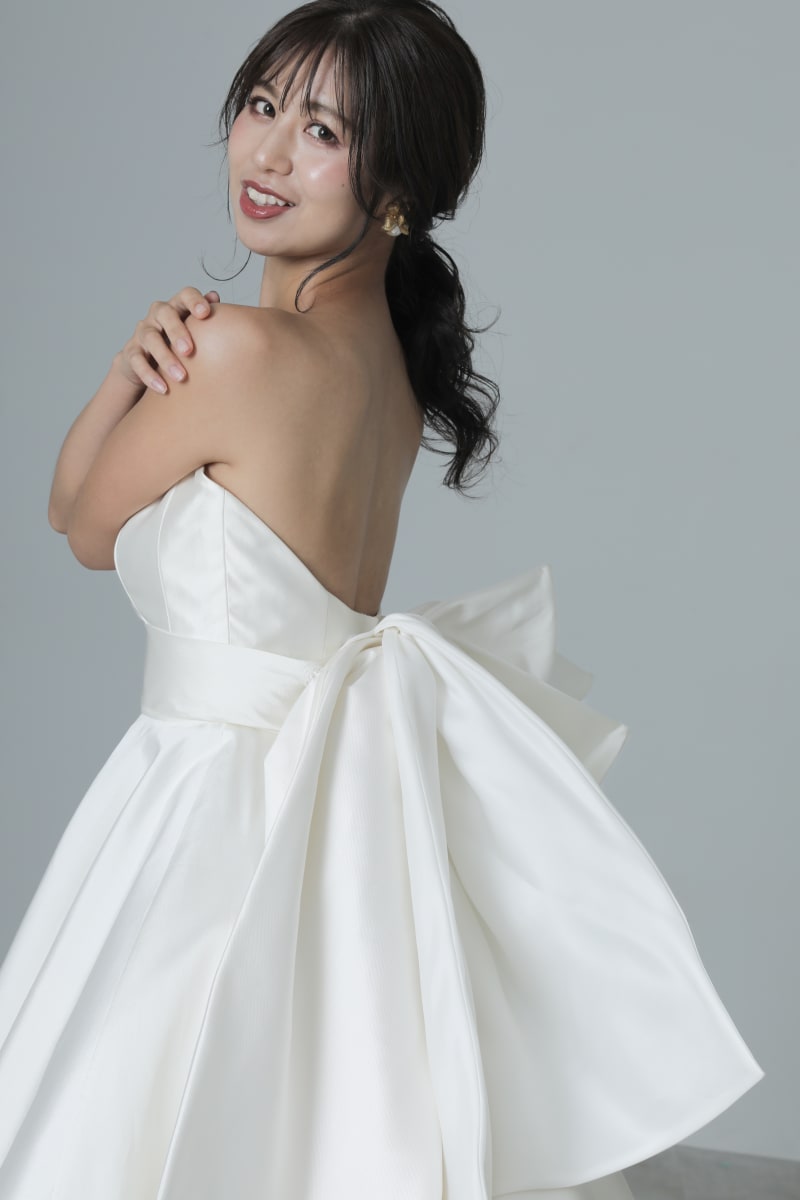 シンプルなフロントデザインに対して後ろにはインパクトを与える大きなリボンが特徴的