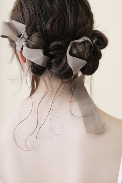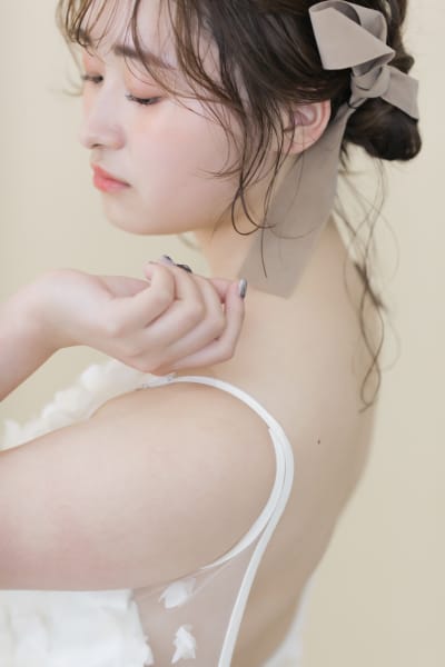 ふわっふわのエンパイアドレスにリボンを使用したヘアアレンジで甘々テイスト♡♡