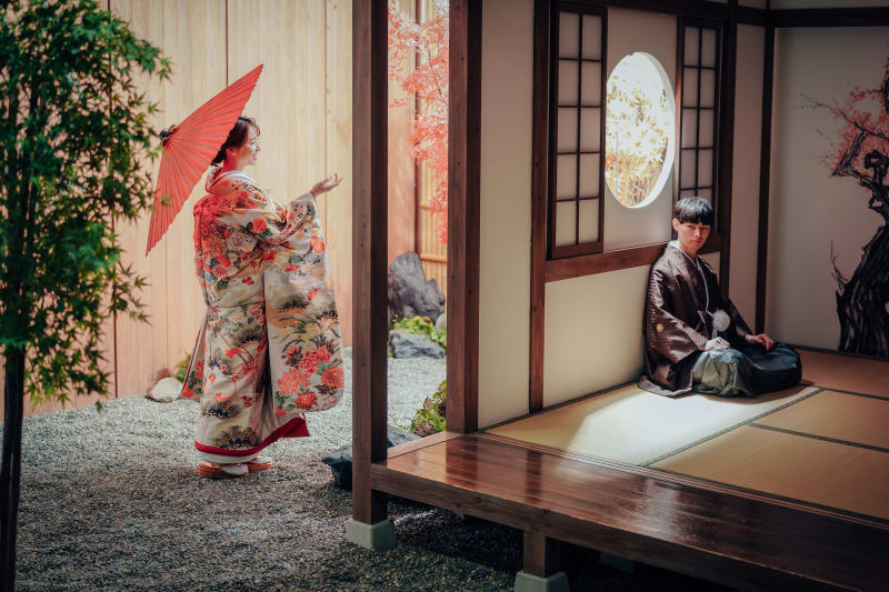 横浜みなとみらい店人気No.1。本格的な茶室スタジオで撮影する、和装の結婚写真