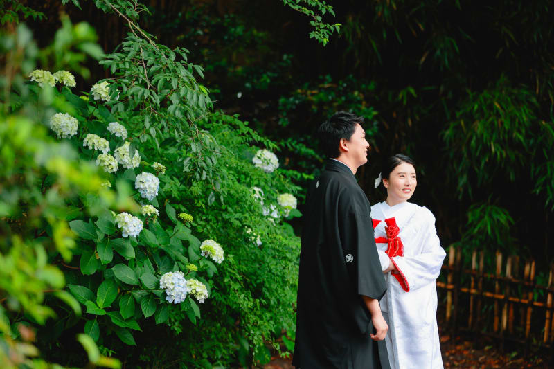 水色の紫陽花が雅日本らしいお花の紫陽花。和装にさりげない彩りを添えてくれて素敵ですよね。