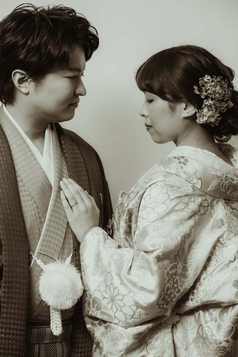 古風にカッコよく!モノクロは和装にも合いますね^^
