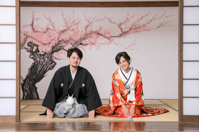 横浜みなとみらい店人気No.1。本格的な茶室スタジオで撮影する、和装の結婚写真