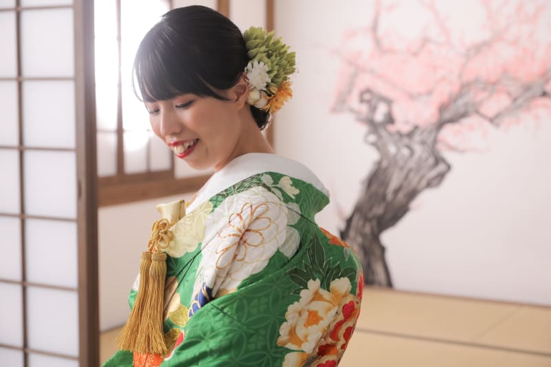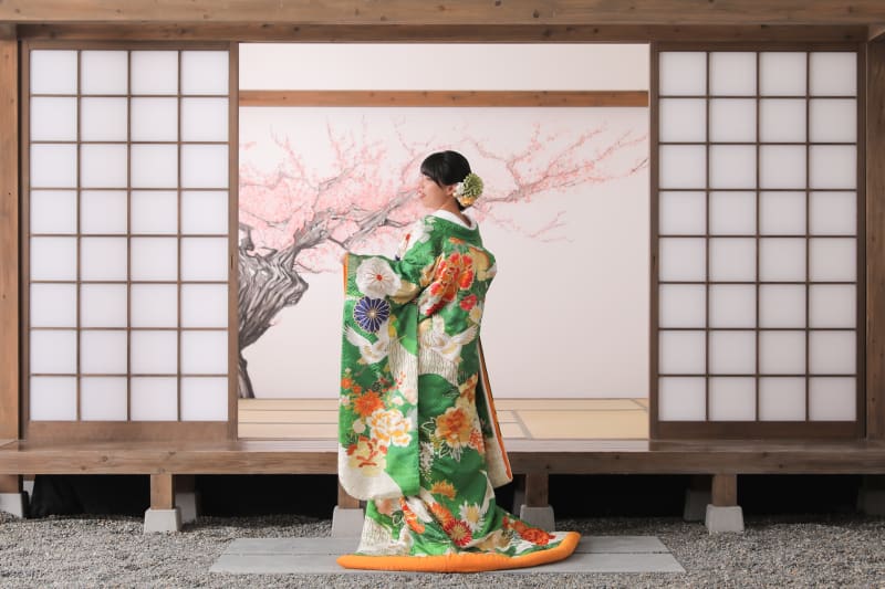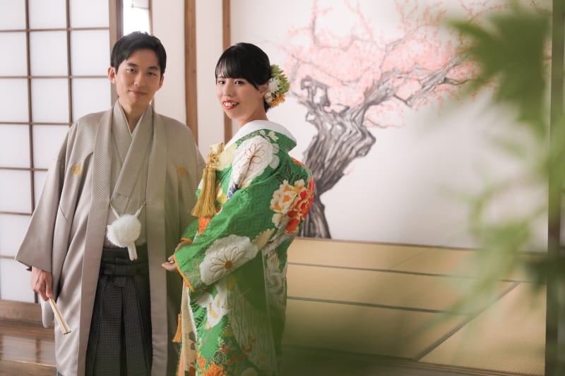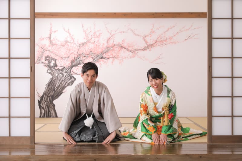 横浜みなとみらい店人気No.1。本格的な茶室スタジオで撮影する、和装の結婚写真