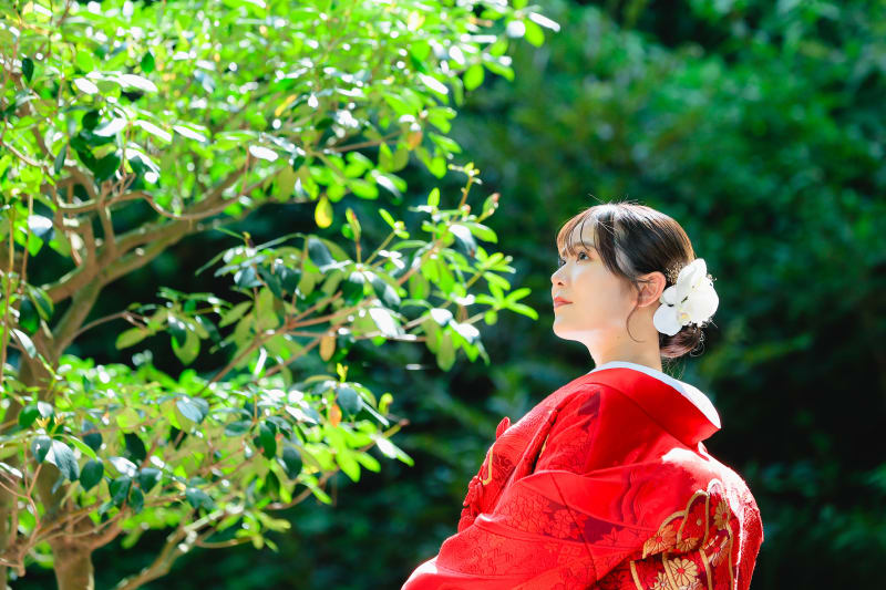 振り返りがとっても美しかったです・:*+.赤無垢と新緑のコントラストが美しい