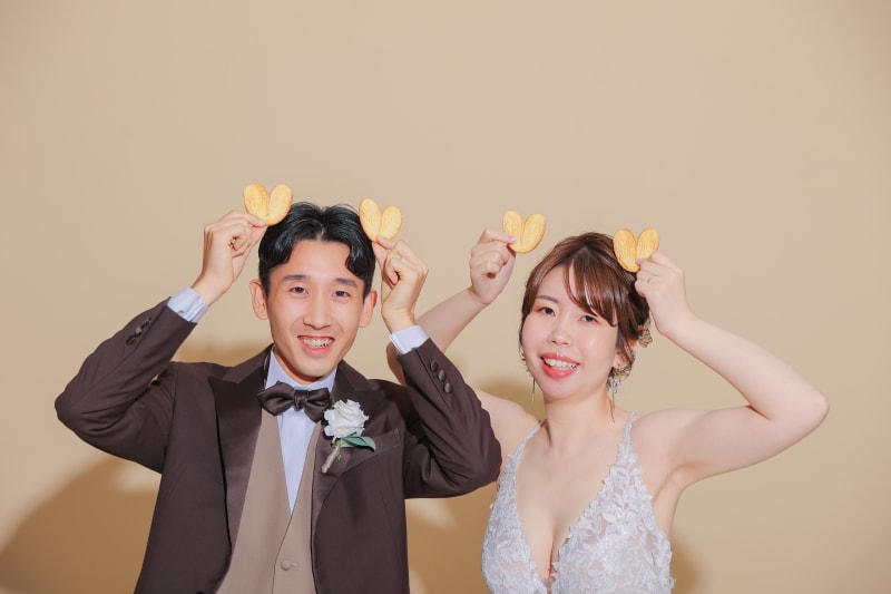 プロポーズの場所にあった源氏パイが思い出のアイテムということで源氏パイを使って撮影!個性が光ります^^