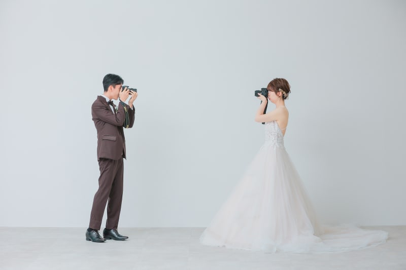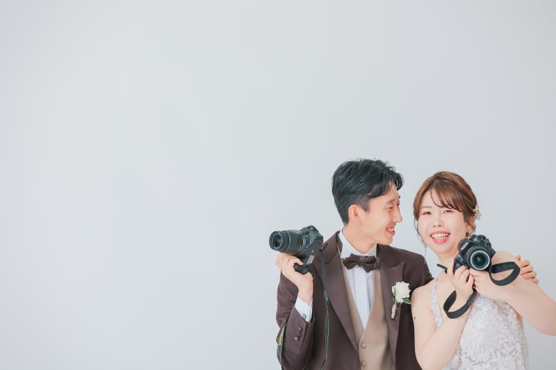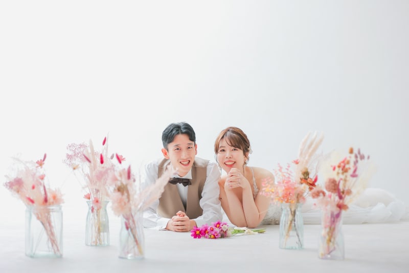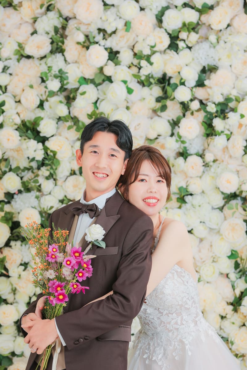白バラの背景やベージュの壁が可愛くたくさんのご新郎新婦様にご指示いただいています♡