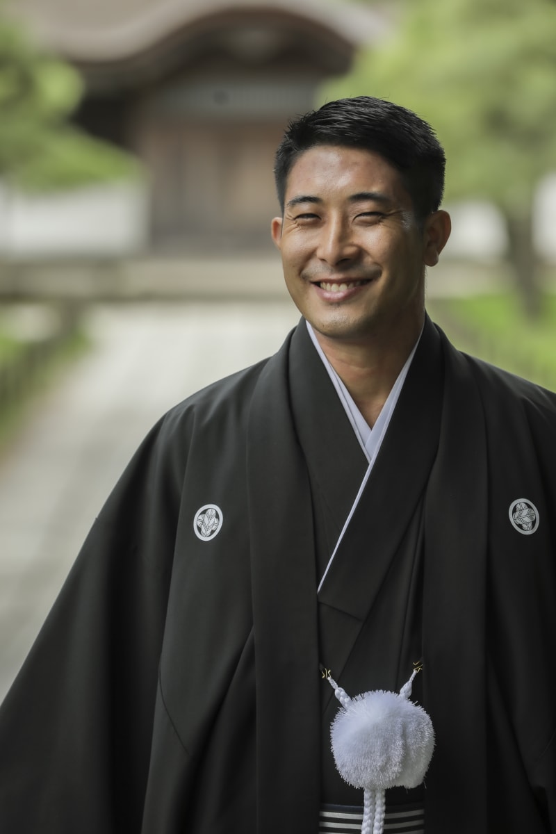 新郎様の笑顔のスイッチが一瞬で入ります。この一つ前の写真はめちゃくちゃクールです