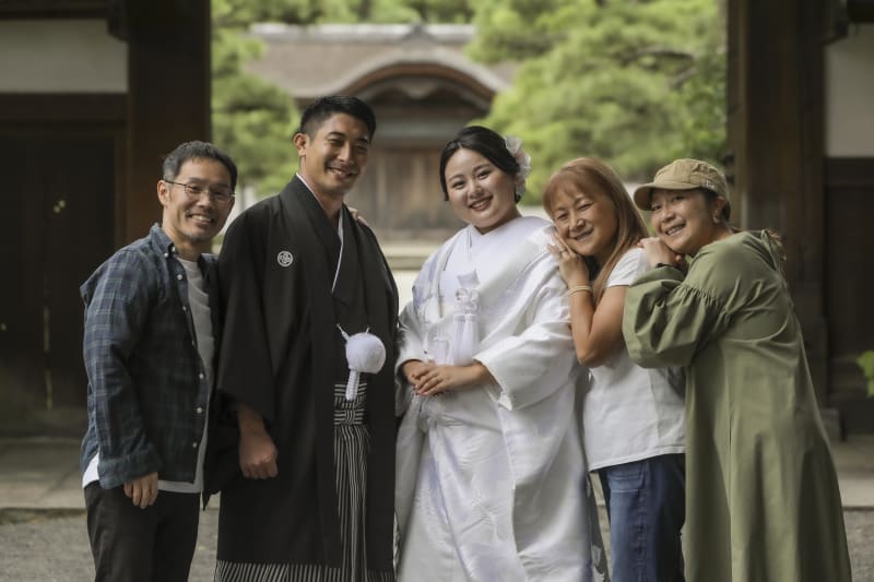 新婦様のお母様とお姉様夫婦との仲良しご家族ショット
