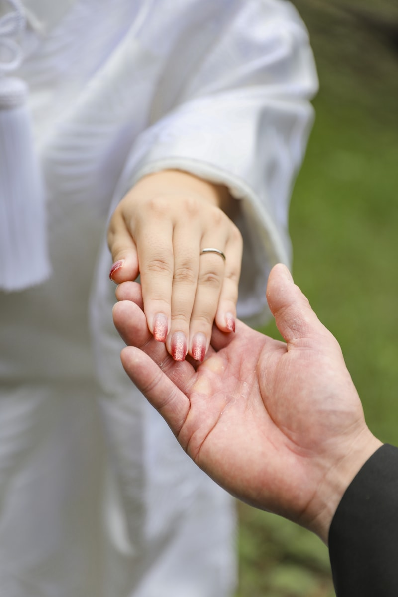 指輪とネイルが際立つように新婦様の手元だけのショットも忘れずに