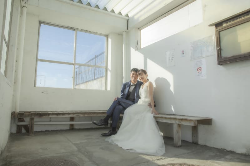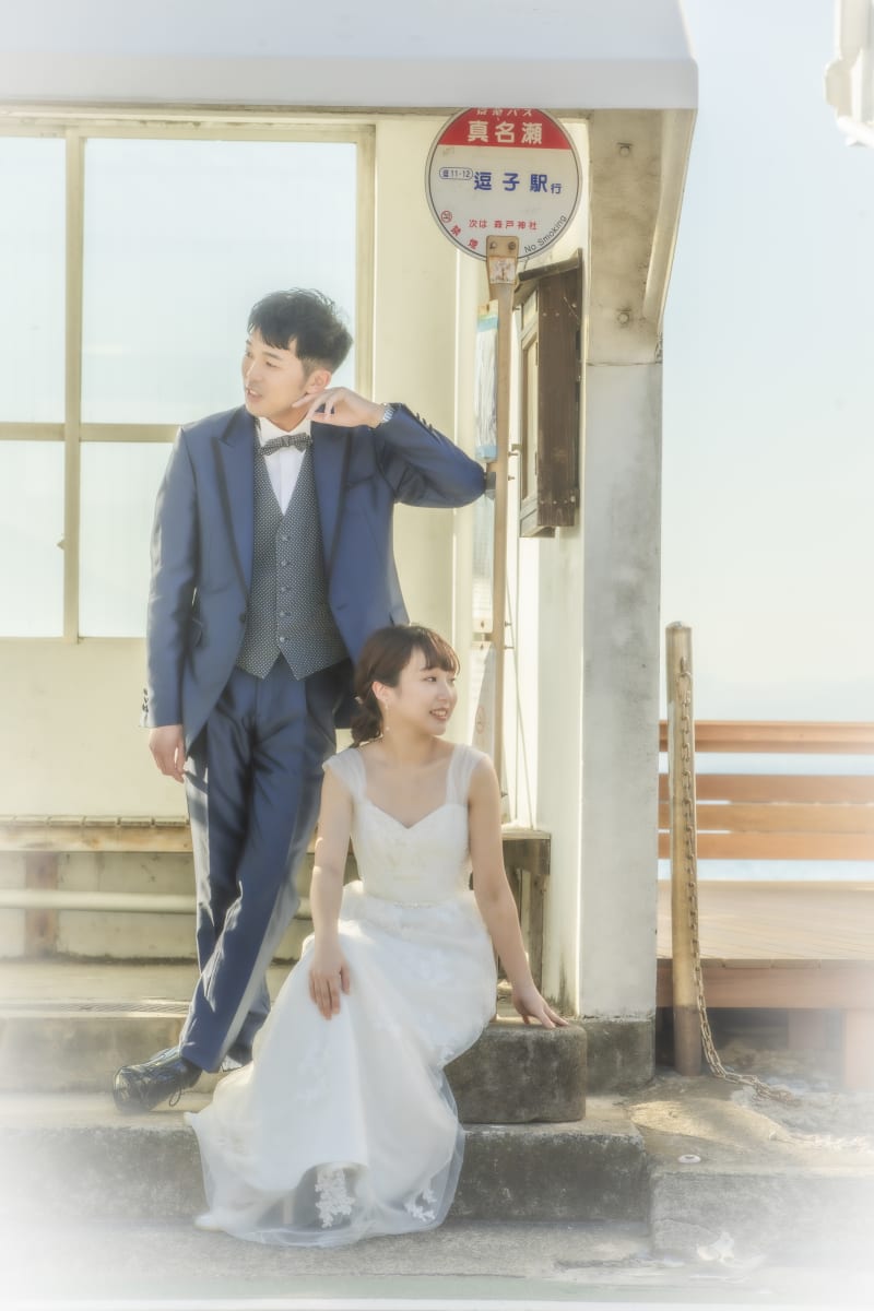 柔らかな光りが差し込むバス停はお二人同様ポカポカです