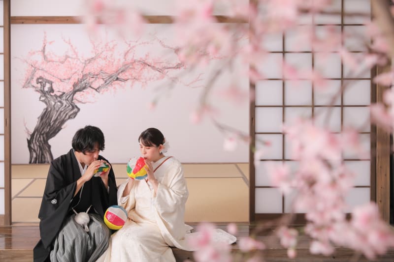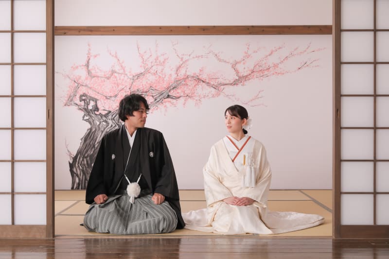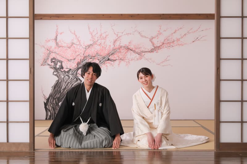 横浜みなとみらい店人気No.1。本格的な茶室スタジオで撮影する、和装の結婚写真