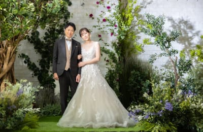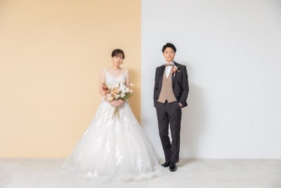 また、ハウススタジオには一面がお花の背景や、緑の多いお外のような背景、2色の壁がある場所などお二人の雰囲気に合わせたお写真が撮影できますよ!