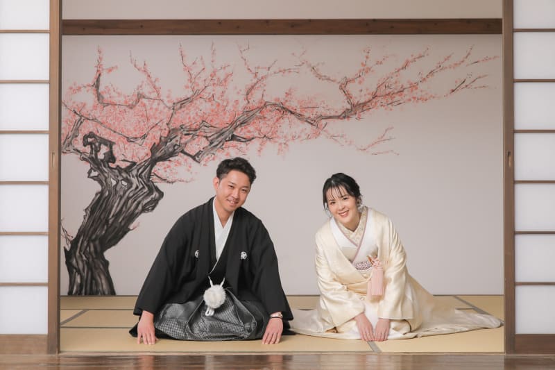 横浜みなとみらい店人気No.1。本格的な茶室スタジオで撮影する、和装の結婚写真