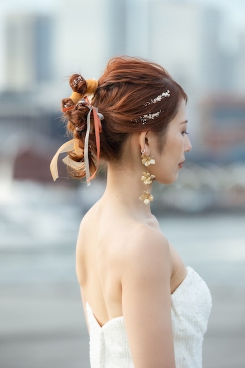 髪色に合わせてオレンジの質感の違うリボン。あえてチグハグにしたらすごく可愛かったです♡