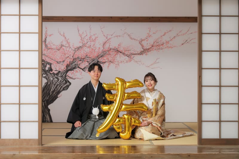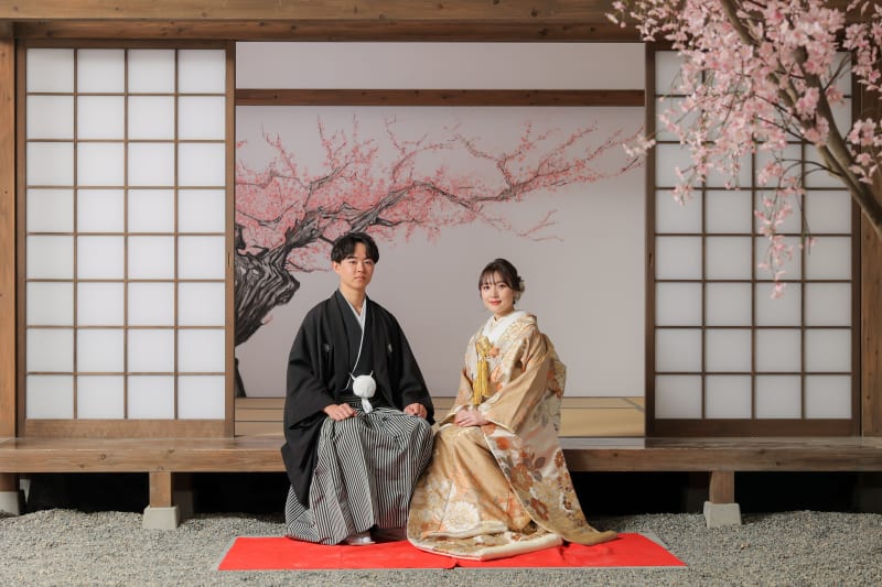 横浜みなとみらい店人気No.1。本格的な茶室スタジオで撮影する、和装の結婚写真