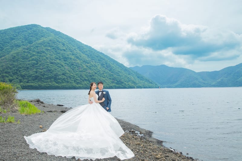 和装と洋装両方で富士山の撮影を楽しめるスペシャルプラン。雪化粧の富士山と撮影できるのは5月末頃までです。