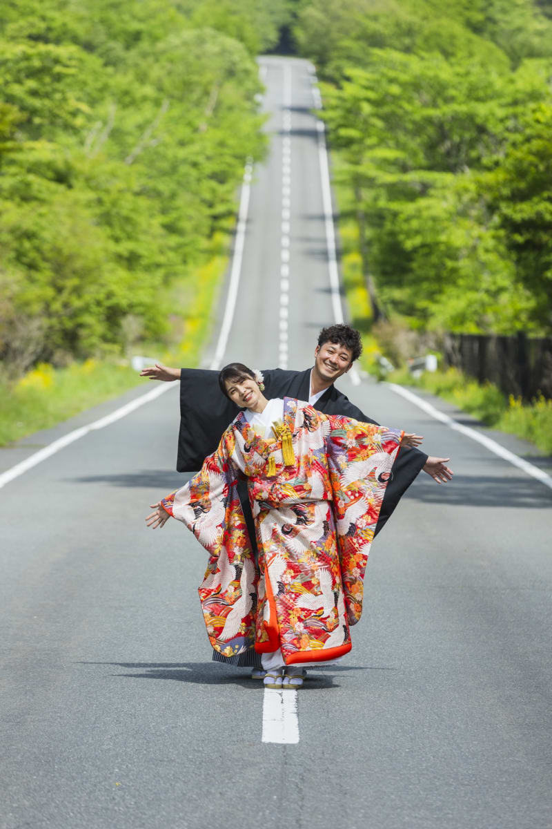 和装と洋装両方で富士山の撮影を楽しめるスペシャルプラン。雪化粧の富士山と撮影できるのは5月末頃までです。