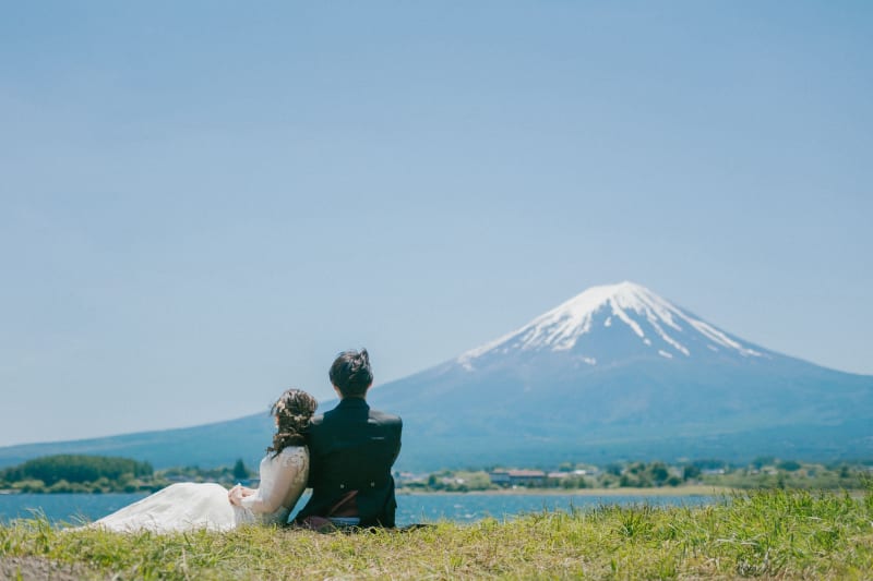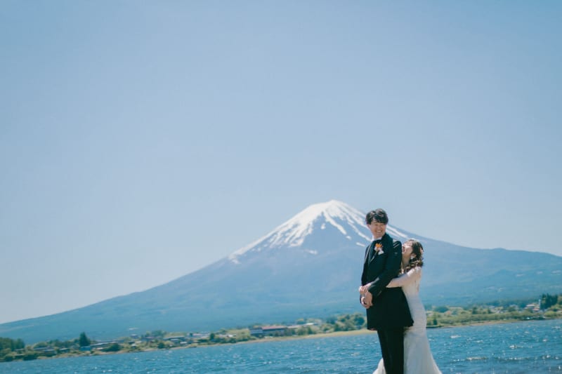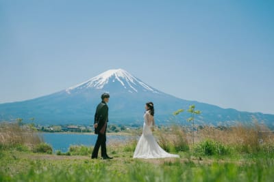 和装と洋装両方で富士山の撮影を楽しめるスペシャルプラン。雪化粧の富士山と撮影できるのは5月末頃までです。