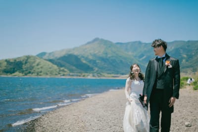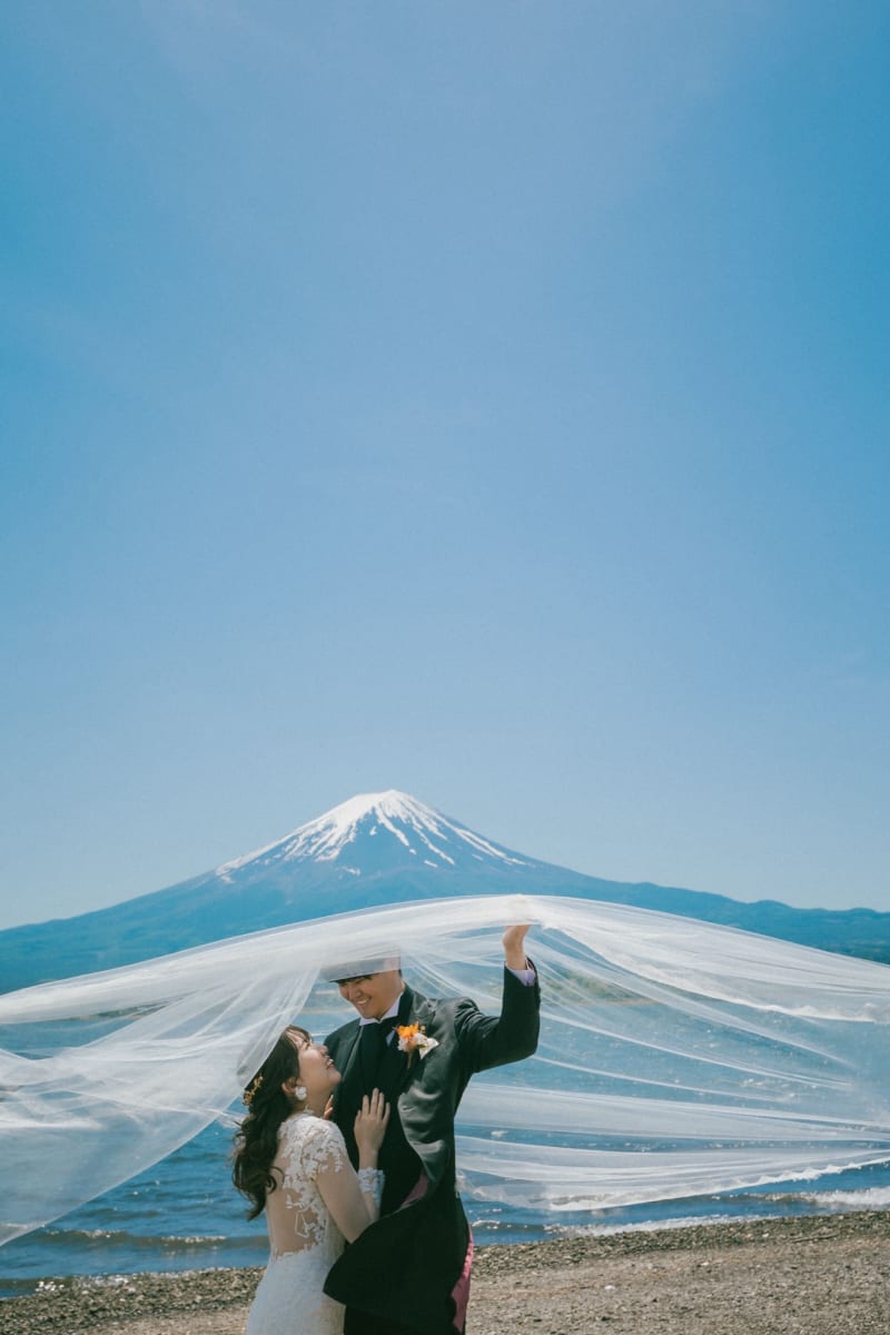 和装と洋装両方で富士山の撮影を楽しめるスペシャルプラン。雪化粧の富士山と撮影できるのは5月末頃までです。