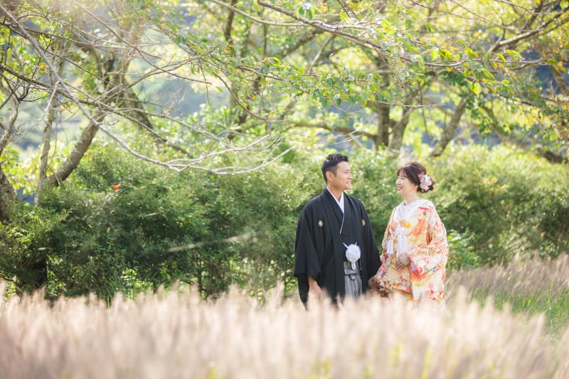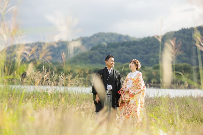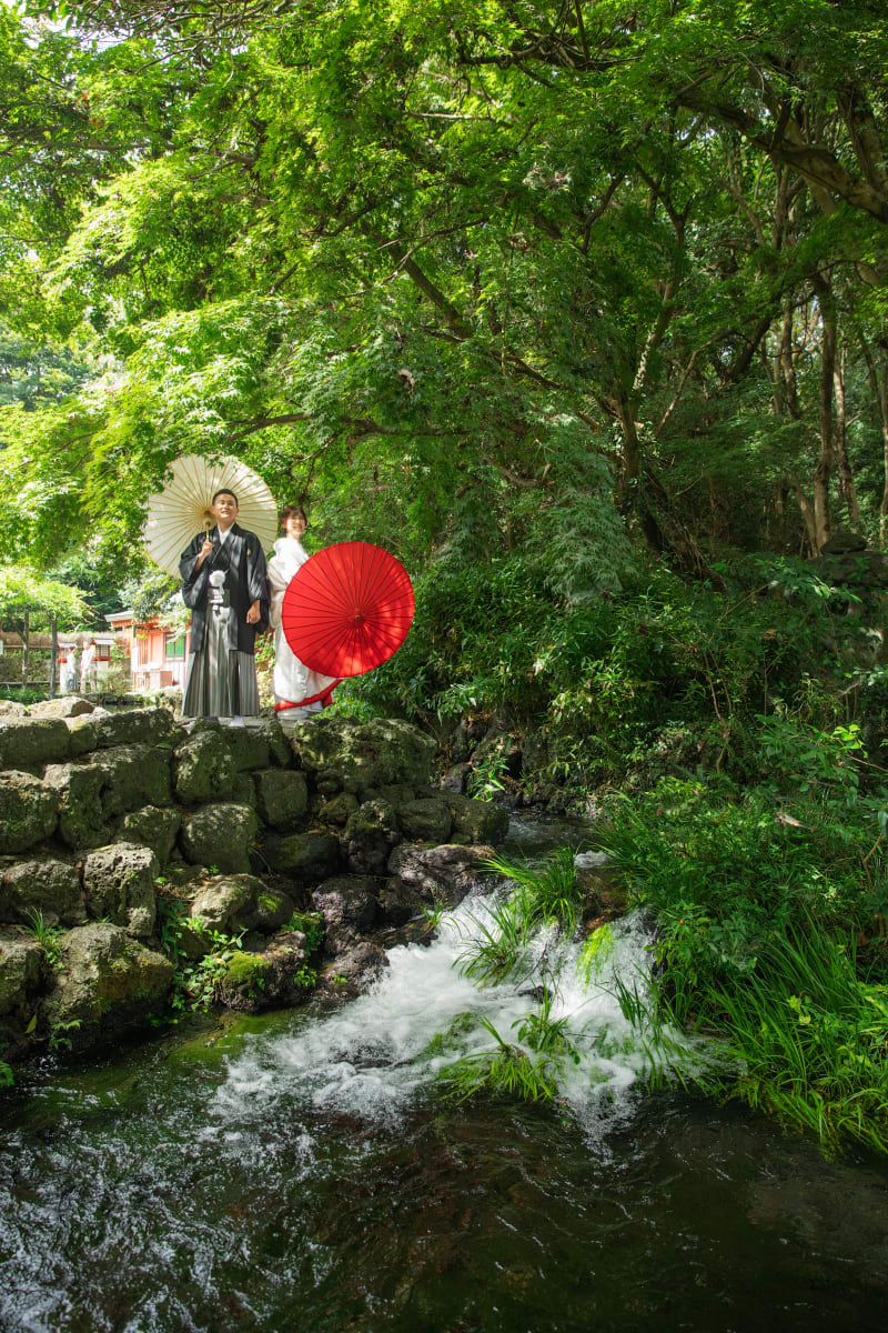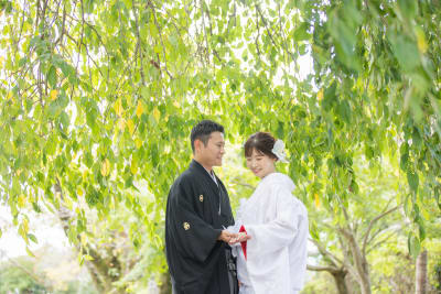 神社での撮影を白無垢で撮影し、色打掛に変更してそのほかのロケーションでの撮影する事もできます。