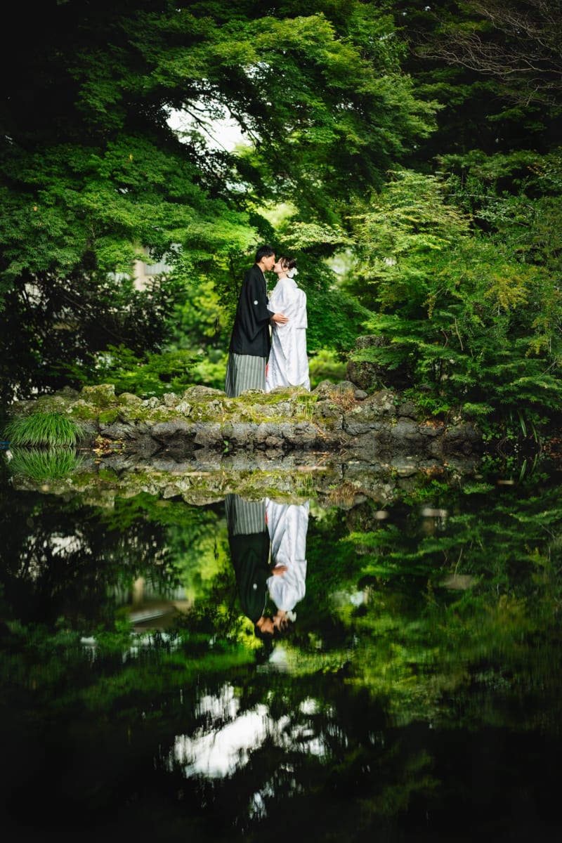 鏡の様に写りこむ綺麗な池がとても素敵ですね