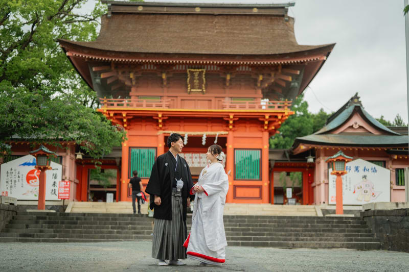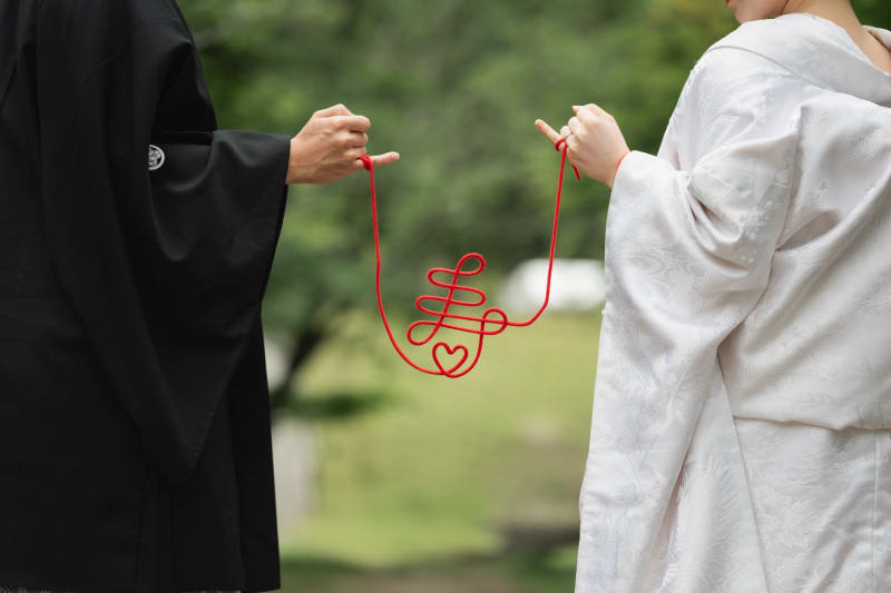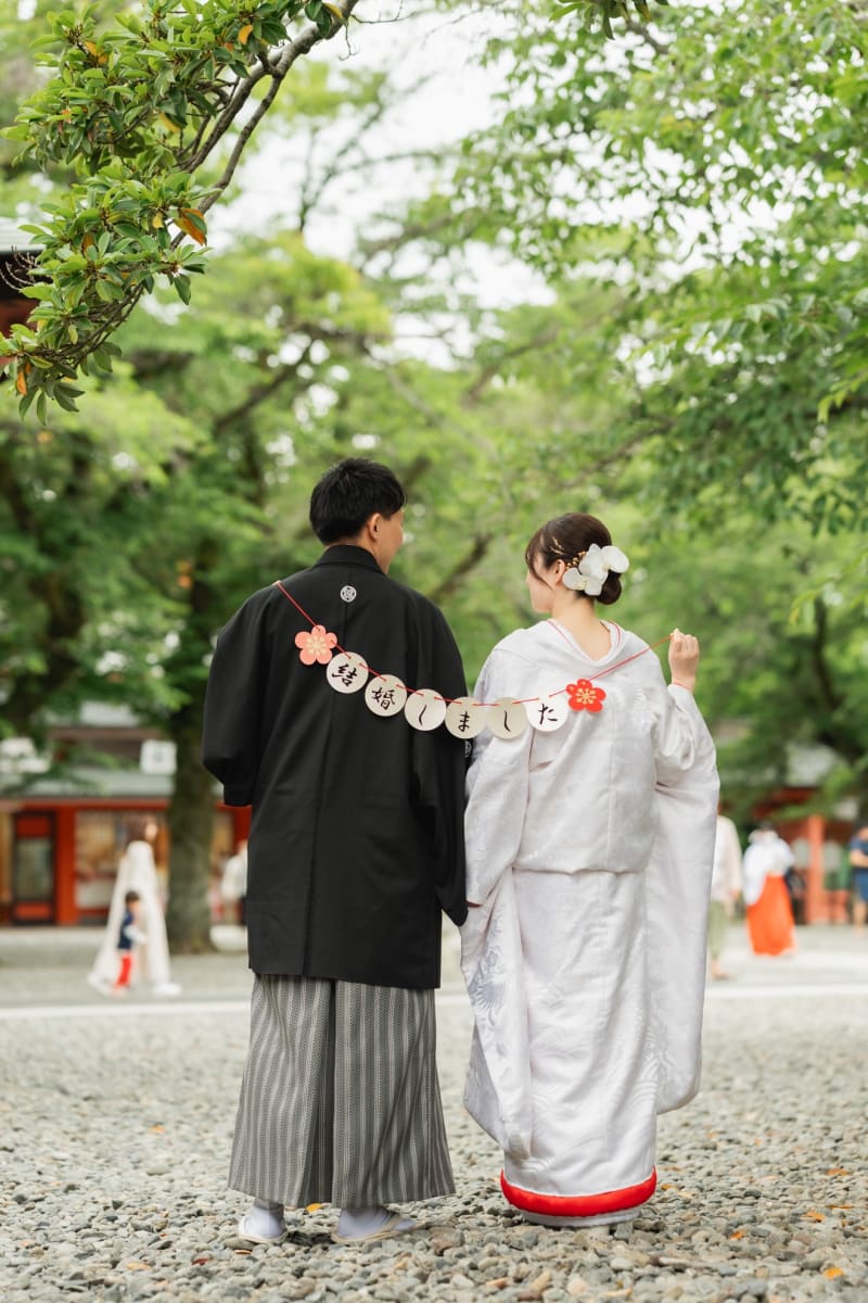 白無垢で赤+ゴールドのアクセントの和装小物が大人可愛いスタイルに