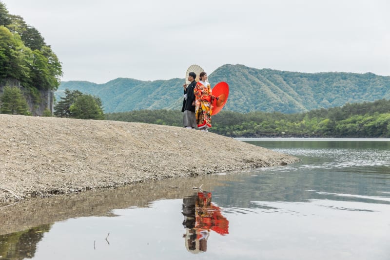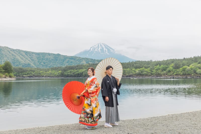 富士五湖などダイナミックな富士山をバックに撮影や綺麗な湖畔での撮影など