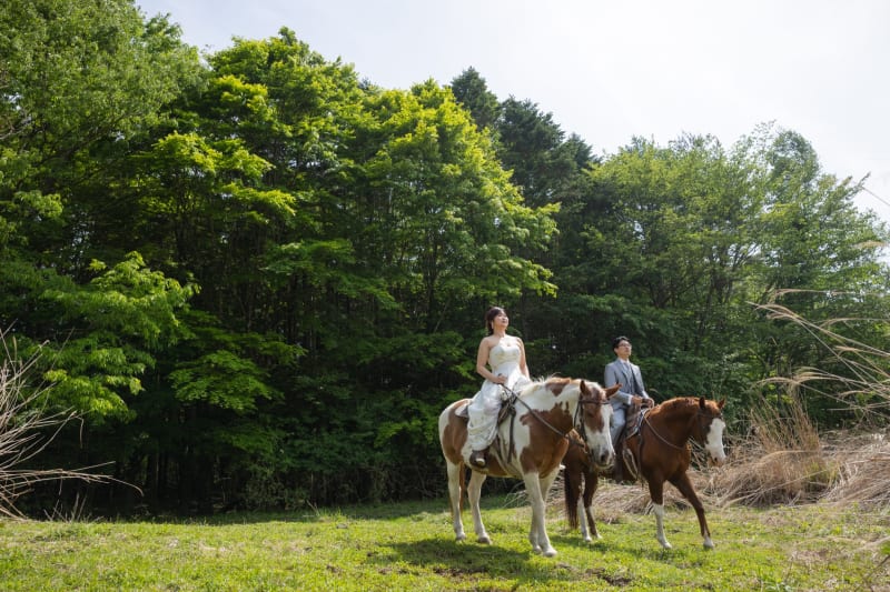 夏にとても人気のお馬さんと撮影できる富士乗馬ロケーションプラン