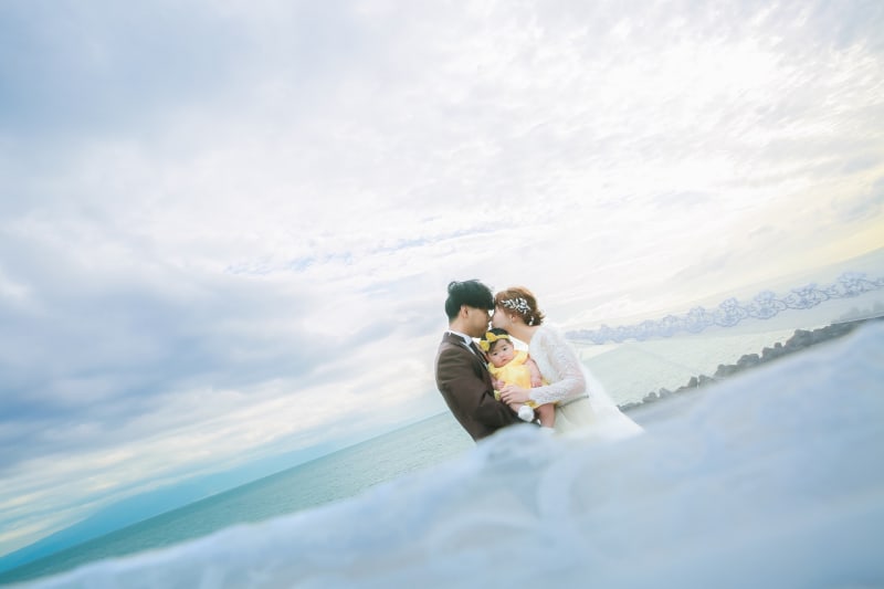 ご来店回数 3 回(オンライン相談会の場合は2回) 撮影相談会→ 衣装合わせ (撮影日の2週間〜1ヶ月前頃)→ 撮影当日 → 商品の発送