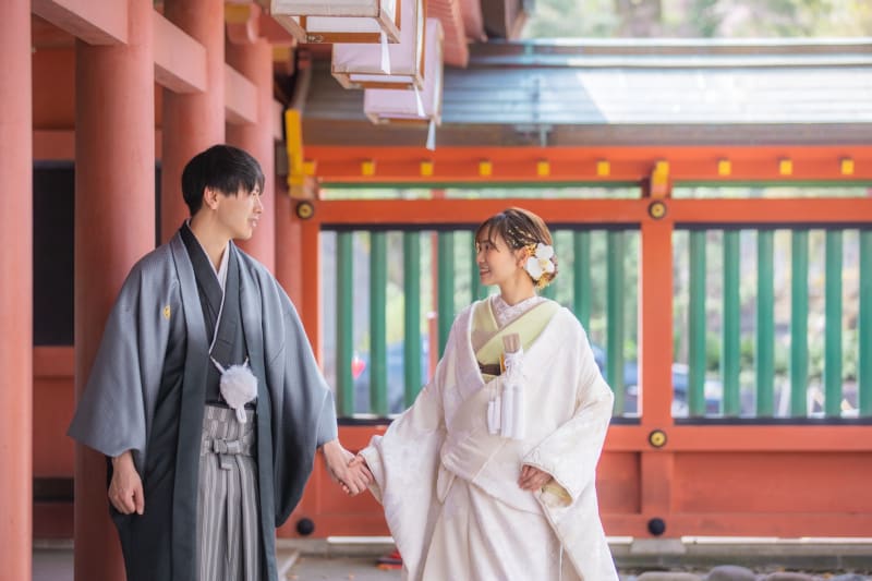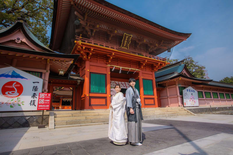 和装プランで神社で撮影する事が可能な、浅間大社和装プラン。