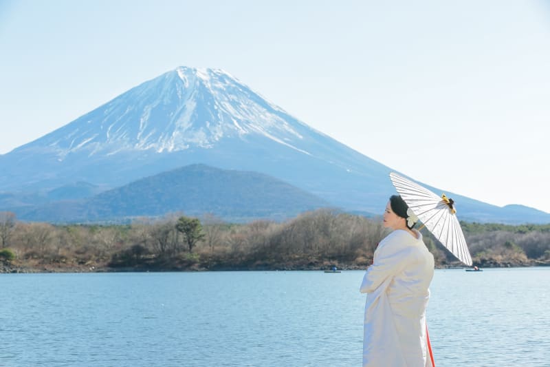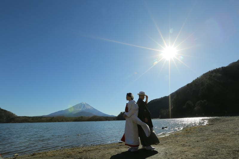 富士山をバックにロケーションフォト。