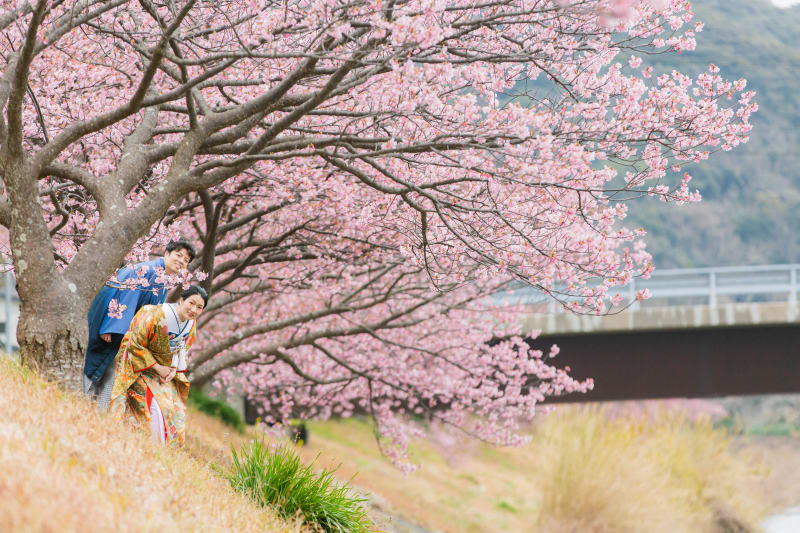 また、桜だけでなく、海の撮影、菜の花畑での撮影、白浜神社や、レトロな街並みでの撮影も大人 気です!