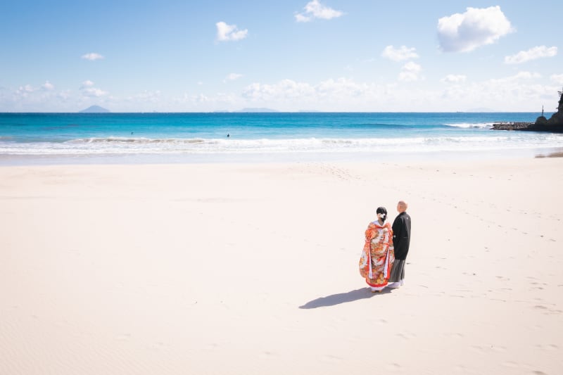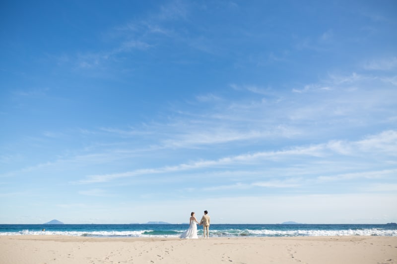 当店でも、人気の高い伊豆の海でのウェディングフォト。