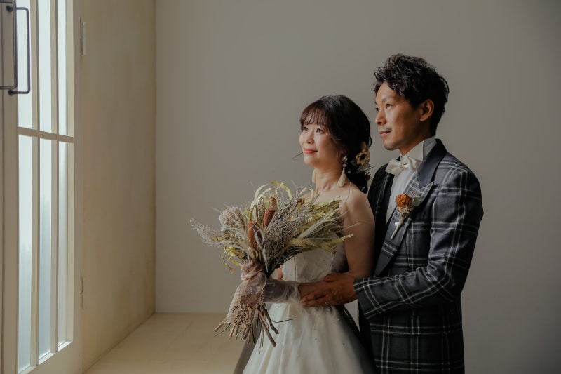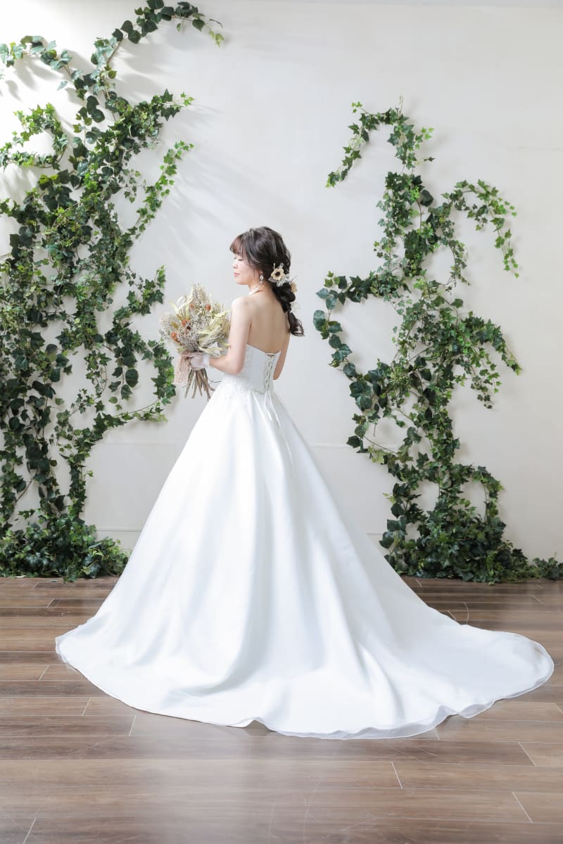 アクセサリーやドライフラワーの髪飾りもこだわってつけました。