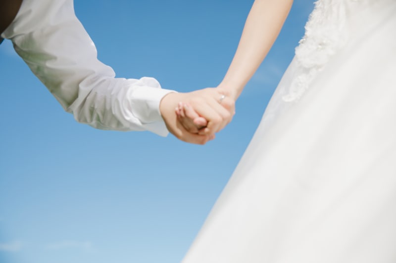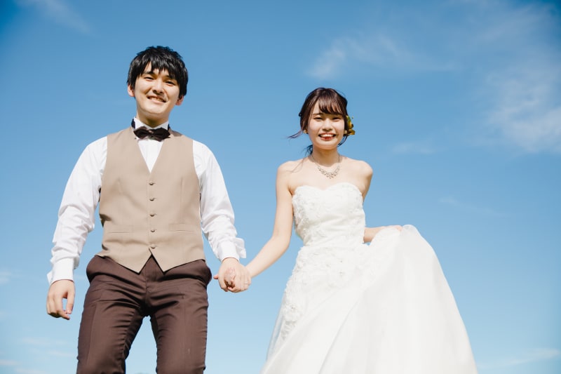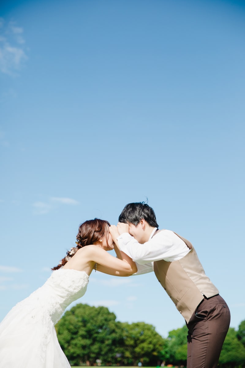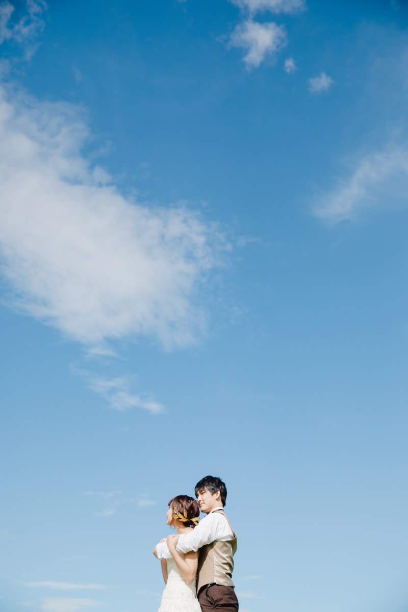 青空の中に二人だけの空間がとても素敵です。雲もいい感じにお二人の空間を演出してくれました。