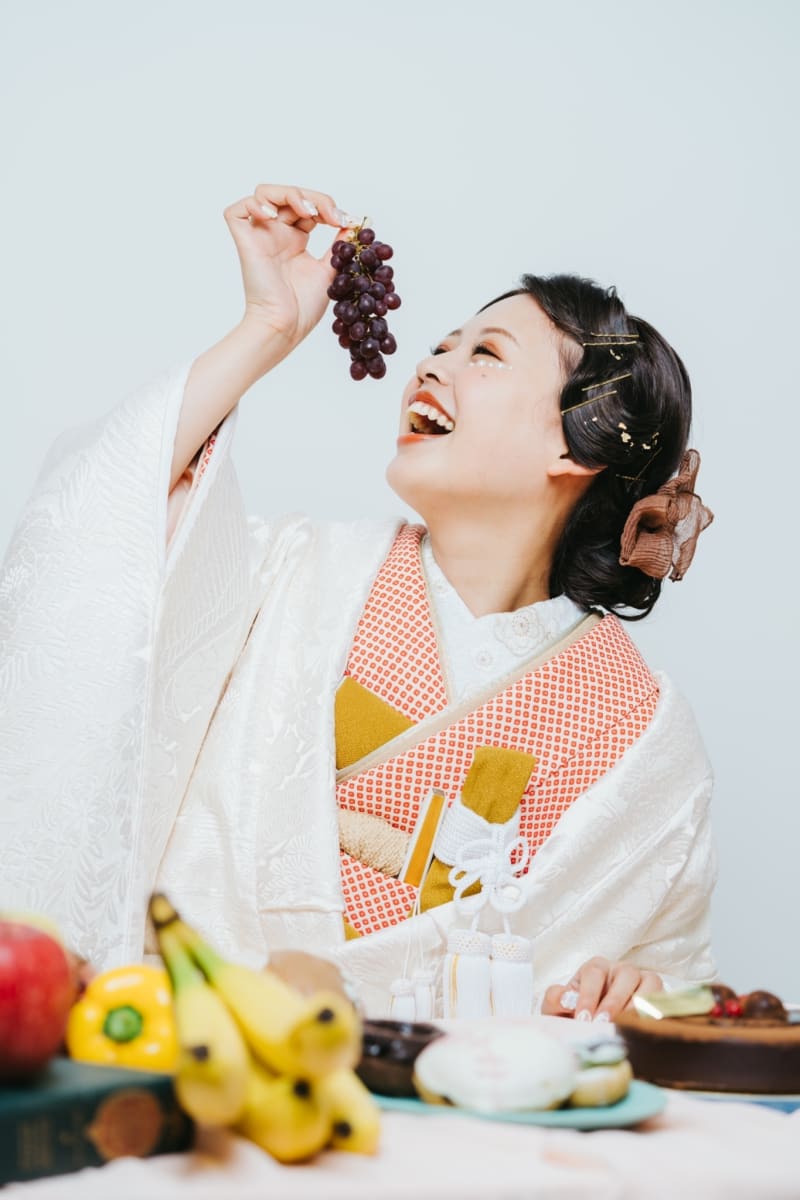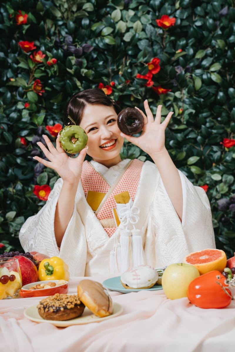 ヘアメイクは“芸術の秋”を意識してデザイン性のあるスタイルにしています。